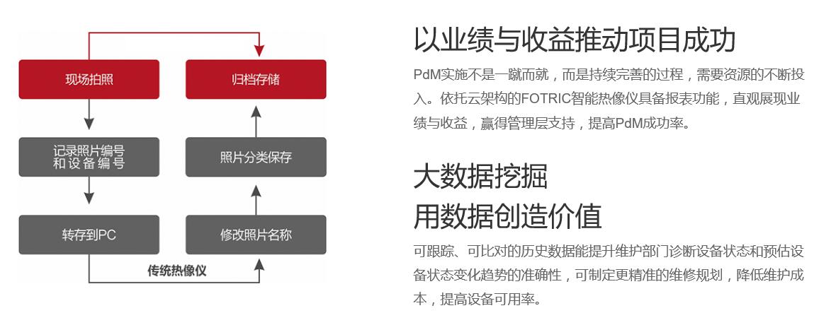 容身PdM思惟,FOTRIC 230系智能化熱像儀資源優化配置挪動網絡和云儲存,萎縮為準備現狀數劇表格收羅與補辦電子設備,讓工作流程低掙到洛地;所經的時候云較勁發現熱像數劇表格大家,提升準備保證作用。